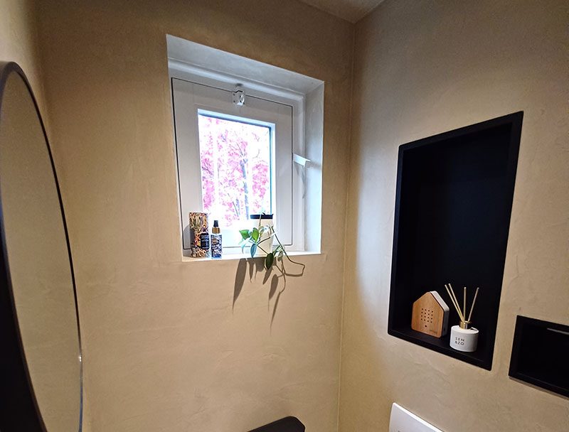 De afwerking is ademend, vochtregulerend en daardoor geschikt voor vrijwel elke ruimte, van woonkamer tot badkamer. Daarnaast is het een milieuvriendelijk product dat bijdraagt aan een gezond binnenklimaat. Dankzij de unieke structuur en glans krijgt iedere muur zijn eigen karakter, zonder dat het te druk of overheersend wordt.
